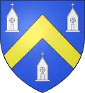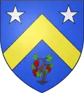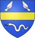 D'azur, au chevron d’or, accompagné en chef de 2 étoiles d’argent, et en pointe d'une colombe, la tête contournée d’or, surmontée d'une étoile du même |