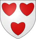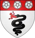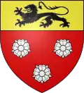 D'argent, au chevron de gueules, accompagné de 3 roses d’argent Il existe aussi : De gueules au chevron d’or, accompagné de 3 roses d’argent |