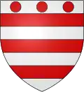 De gueules, à trois besants d'or ; au lambel du même.[10] |