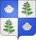 D'azur à une coquille d'argent, écartelé d'argent à un brin de fougère de sinople posé en pal.[6],[8]