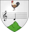 D'argent, au gonfanon d’azur, frangé de gueules.[10] |