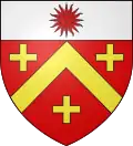 De gueules au chevron d'or accompagné de trois croisettes du même ; au chef d'argent chargé d'un soleil de gueules.[Rivoire 19] |