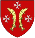 D'argent à trois croissants de gueules, deux en chef adossés, un en pointe renversé ; au chef d'azur chargé de deux étoiles d'or.[Rivoire 7] |