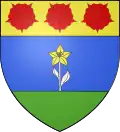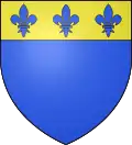 D'azur au chef d'or chargé de trois fleurs de lys d'azur.[Rivoire 18] |