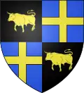 De sable au lion d'or armé, lampassé et couronné de gueules ; à la fasce partie d'argent et d'azur, chargée de deux étoiles de l'un en l'autre brochant sur le tout.[Rivoire 14] |