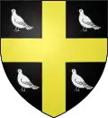 De gueules à la croix d'or, cantonnée de quatre colombes d'argent.[Rivoire 15] |