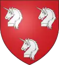 De gueules à trois têtes et cous de licorne coupés d'or.[Rivoire 17] |