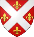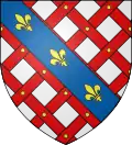 D'argent au treillis de gueules, cloué d'or, à la bande d'azur chargée de trois fleurs de lys d'or brochant sur le tout.[Rivoire 22] |