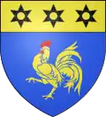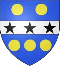 D'or à la bande d'azur chargée de deux molettes d'or, une en chef, une en pointe ; au chef d'azur chargé d'une molette d'or.[Rivoire 3] |