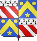 Écartelé aux 1 et 4 d'azur à trois étoiles d'argent, qui est d'Andrault ; aux 2 et 3 de gueules aux trois fasces vivrées d'argent, à la bande d'azur semée de fleurs de lys d'or, brochant sur le tout, qui est de Gencien.[Rivoire 23] |