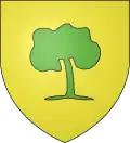 D'argent à l'arbre terrassé de sinople, au chef d'azur chargé d'un soleil d'or.[3] |