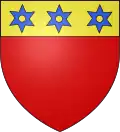 D'or au chef de gueules, chargé d'un lion issant d'or.[17] Alias de gueules au lion d'or issant d'une champagne de même.