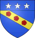 D'or au chevron de sable accompagné de trois étoiles d'azur en chef, et en pointe d'un croissant de gueules.[7]