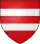 D'argent à la fasce de gueules, frettée d'or, [accompagnée] de deux burelles de gueules.[30] Alias de gueules à trois fasces d'argent, celle du milieu frettée de sable. |
