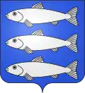 D'azur à deux bars adossés, et semé de croix recroisetées au pied fiché d'or.[17] |