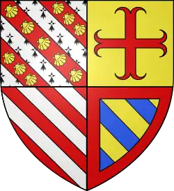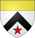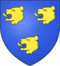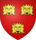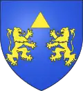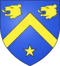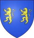 D'azur au chef d'or ; au lion de gueules, couronné d'argent, brochant sur le tout.[30] Alias le lion couronné de gueules.[31] Devise : « Oncques ne devies »[30] |