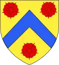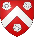 De gueules au chevron d'or accompagné de trois merlettes de sable.[24] Alias trois merlettes de même.[25] |