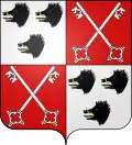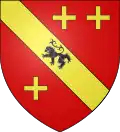 De gueules, à la bande d'or, chargée d'un lion de sable et accompagnée de trois croisettes du second émail, deux en chef et une en pointe.[19] Alias trois trèfles en place des croisettes.[18] |