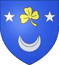 D'azur, au trèfle d'or, soutenu d'un croissant d'argent et accosté de deux étoiles de même.[18] |