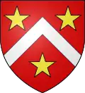 D'azur, au chevron d'or, accompagné en chef de trois étoiles mal ordonnées d'argent et en pointe d'un lion d'or.[26] |
