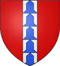 De gueules, à la fasce d'argent chargée de trois fleurs de lys d'azur.[10] Alias trois fleurs de lys du champ.[10]
