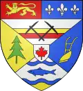 Sherbrooke (Québec) D'or au pairle ondé d'azur chargé en cœur d'une molette d'argent, en chef de deux éclairs aussi d'argent et en pointe d'un fer de lance d'or, accompagné en chef d'une rose de gueules et en pointe de deux fleurs de lys d'azur[9] |