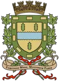 D'or à la fasce d'azur chargé d'un croissant accosté de deux étoiles à 5 raies du champ, accompagné au chef d'un léopard couronné et à la pointe d'un cerf, le tout de gueules.[45] |