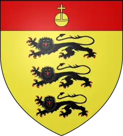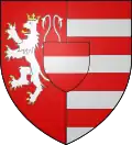 Armes attestées: D'or, à l'aigle de sable, membrée, becquée et armée de gueules Armes attribuées: D'or, à l'aigle de sable, membrée, becquée et armée de gueules ; sur-le-tout d'or aux trois lions passant de sable[58]. |