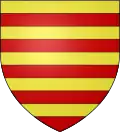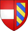 D'or, à l'aigle de sable, membrée, becquée et armée de gueules ; sur-le-tout fuselé en bande d'azur et d'argent[58]. |