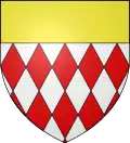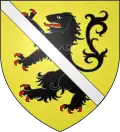 écartelé en 1 et 4 de sable, au lion d'or, armé, lampassé et couronné de gueules et en 2 et 3 fuselé en bande d'azur et d'argent[10]. |