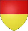 Parti, au 1 d'or au lion de sable, au 2 de gueules à la fasce d'argent |