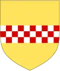 D'or, à la fasce échiquetée d'argent et de gueules de trois tires[3]. |