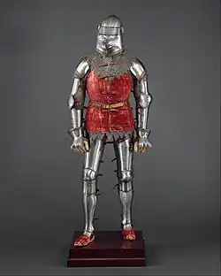 À la Renaissance, les armures deviennent également un instrument d’apparat, utilisées notamment lors de cérémonies fastueuses (entrées[3] des rois et des princes, victoires militaires). Son art illustre la culture raffinée de l'époque maniériste. Les armures s’épaississent pour faire face aux armes à feu et à partir de la deuxième moitié du XVIe siècle, certaines parties de celles-ci (comme les canons d'avant-bras, les cubitières et les jambières) disparaissent pour compenser la hausse de poids engendré[4].