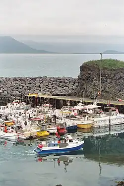 À partir de 1933, l'ère des chalutiers a commencé, on a construit un port en dur. Un pont de ponton en béton a été construit en 1944 et en même temps, une route reliant le port à la ville et au réseau routier islandais en général a été construite.