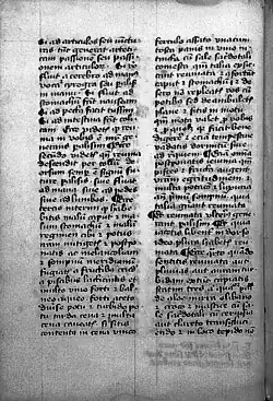 À la fin du XIIIe siècle, le couvent des Dominicains de Montpellier abrite une soixantaine de moines enseignant l'utilisation des plantes médicinales à des prêtres de toutes nationalités[20]. Car, durant tout le Moyen Âge, la grande encyclopédie pharmaceutique de Dioscoride, Peri hulês iatrikês, s'est conservée par des copies manuscrites de sa traduction latine, De materia medica. Contrairement aux textes fondamentaux de Hippocrate et Galien, tous oubliés, elle n'a pas eu à revenir par des traductions de l'arabe en latin. Mais elle n'est connue le plus souvent que sous forme de courtes compilations illustrées et rarement dans sa forme complète et originelle.