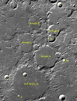 Arnold est un cratère d'impact sur la face visible de la Lune. Le nom fut officiellement adopté par l'Union astronomique internationale (UAI) en 1935[4],[2],[3], en référence à Christoph Arnold (1650-1695)[1],[2],[3]. Une partie du plancher intérieur du cratère a été recouvert par la lave au fil des années.