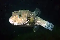 Arothron hispidus, communément nommé Poisson-ballon à épaule noire ou Poisson-ballon à taches blanches, est une espèce de poisson marin de la famille des Tetraodontidae.