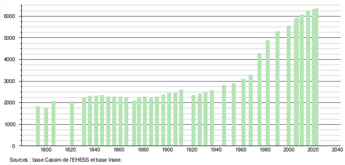 - ↑ Population municipale de référence en vigueur au 1er janvier 2025, millésimée 2022, définie dans les limites territoriales en vigueur au 1er janvier 2024, date de référence statistique : 1er janvier 2022.