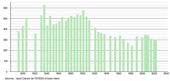 - ↑ Fiches Insee - Populations de référence de la commune pour les années 2006, 2007, 2008, 2009, 2010, 2011, 2012, 2013, 2014, 2015, 2016, 2017, 2018, 2019, 2020, 2021 et 2022.