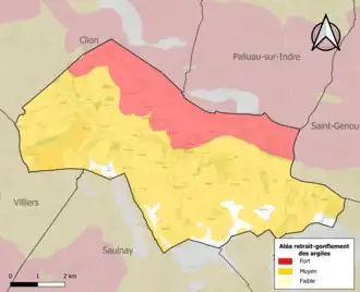 Le retrait-gonflement des sols argileux est susceptible d'engendrer des dommages importants aux bâtiments en cas d’alternance de périodes de sécheresse et de pluie. 95,6 % de la superficie communale est en aléa moyen ou fort (84,7 % au niveau départemental et 48,5 % au niveau national). Sur les 172 bâtiments dénombrés sur la commune en 2019, 170 sont en aléa moyen ou fort, soit 99 %, à comparer aux 86 % au niveau départemental et 54 % au niveau national. Une cartographie de l'exposition du territoire national au retrait gonflement des sols argileux est disponible sur le site du BRGM[21],[22].