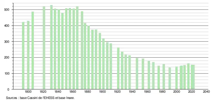 - ↑ Population municipale de référence en vigueur au 1er janvier 2025, millésimée 2022, définie dans les limites territoriales en vigueur au 1er janvier 2024, date de référence statistique : 1er janvier 2022.