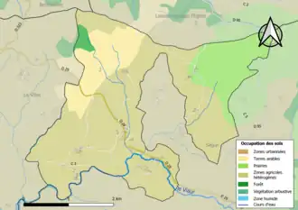 L'occupation des sols de la commune, telle qu'elle ressort de la base de données européenne d’occupation biophysique des sols Corine Land Cover (CLC), est marquée par l'importance des territoires agricoles (98,7 % en 2018), une proportion identique à celle de 1990 (98,7 %). La répartition détaillée en 2018 est la suivante : zones agricoles hétérogènes (69 %), prairies (15,3 %), terres arables (14,4 %), forêts (1,3 %)[26].