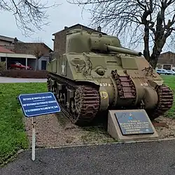 - Un char d'assaut de la Seconde Guerre mondiale a été reconverti en monument commémoratif de la bataille d'Arracourt. Le modèle exposé est en réalité un Sherman M4.A4T[58], série qui a été créé en 1952, en reconfigurant à l'arsenal de Rueil-Malmaison les M4 A4 de l'armée française.