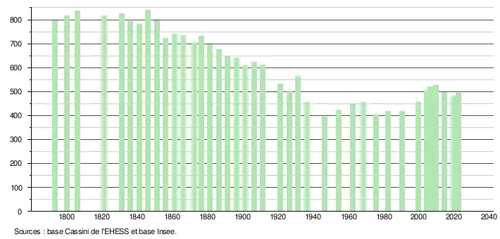 - ↑ Population municipale de référence en vigueur au 1er janvier 2025, millésimée 2022, définie dans les limites territoriales en vigueur au 1er janvier 2024, date de référence statistique : 1er janvier 2022.