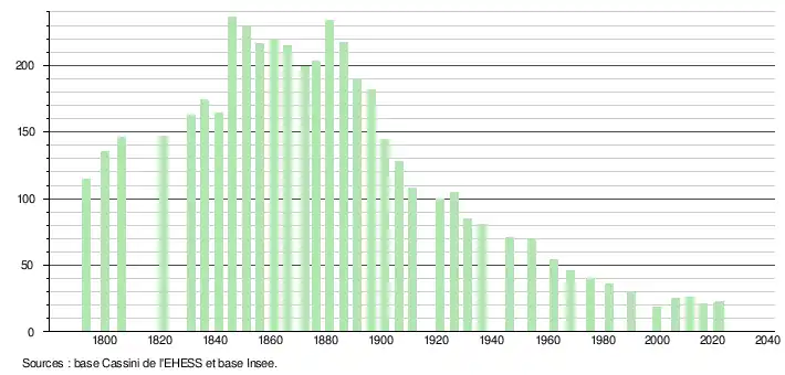 - ↑ Fiches Insee - Populations de référence de la commune pour les années 2006, 2007, 2008, 2009, 2010, 2011, 2012, 2013, 2014, 2015, 2016, 2017, 2018, 2019, 2020, 2021 et 2022.
