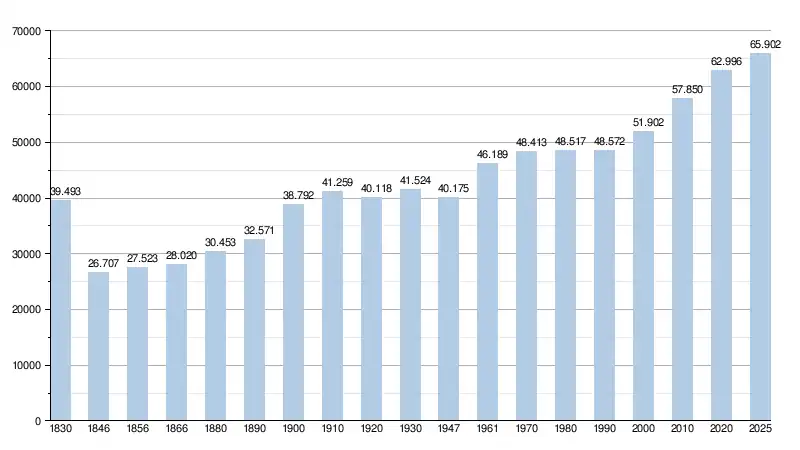 - Source: DGS , de 1830 à 1970=recensements population; à partir de 1980 = nombre d'habitants chaque 1 janvier[1]