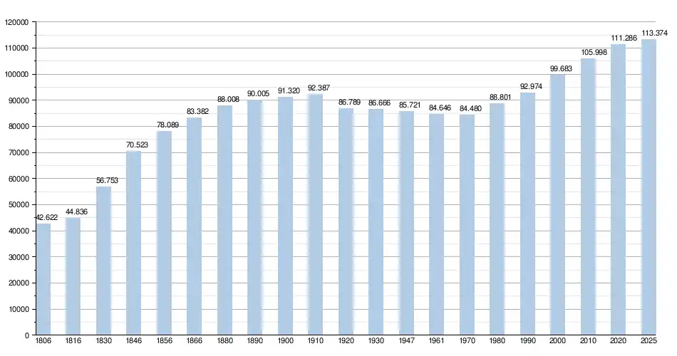 - Source: DGS , de 1831 à 1981=recensements population; à partir de 1990 = nombre d'habitants chaque 1 janvier[1]