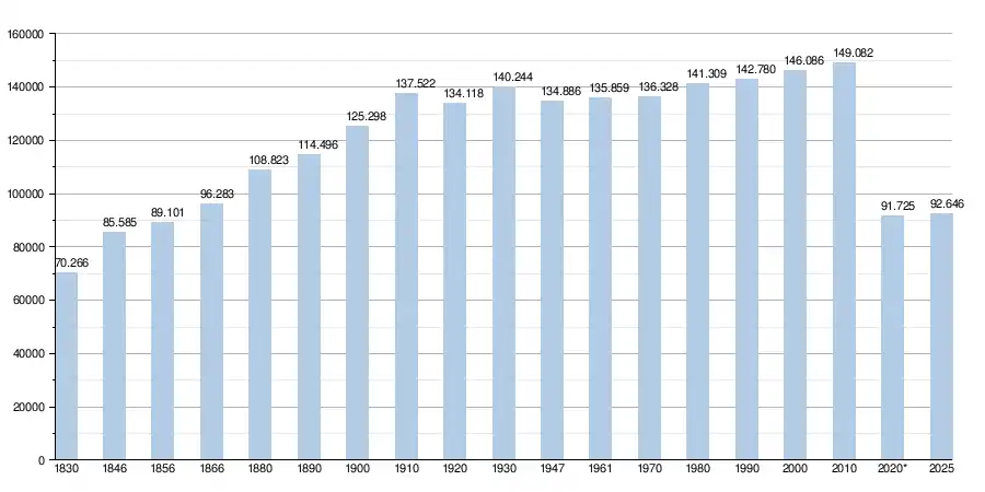 - Source: DGS , de 1830 à 1970=recensements population; à partir de 1980 = nombre d'habitants chaque 1 janvier[1]