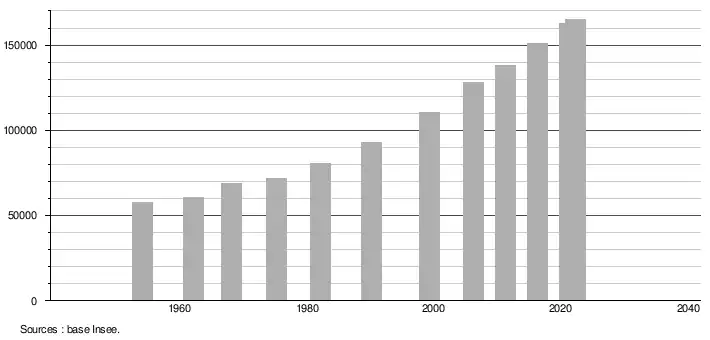 - ↑ Population municipale de référence en vigueur au 1er janvier 2025, millésimée 2022, définie dans les limites territoriales en vigueur au 1er janvier 2024, date de référence statistique : 1er janvier 2022.