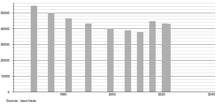 - ↑ Population selon le sexe et l'âge quinquennal de 1968 à 2013 - Recensements harmonisés - Séries départementales et communales